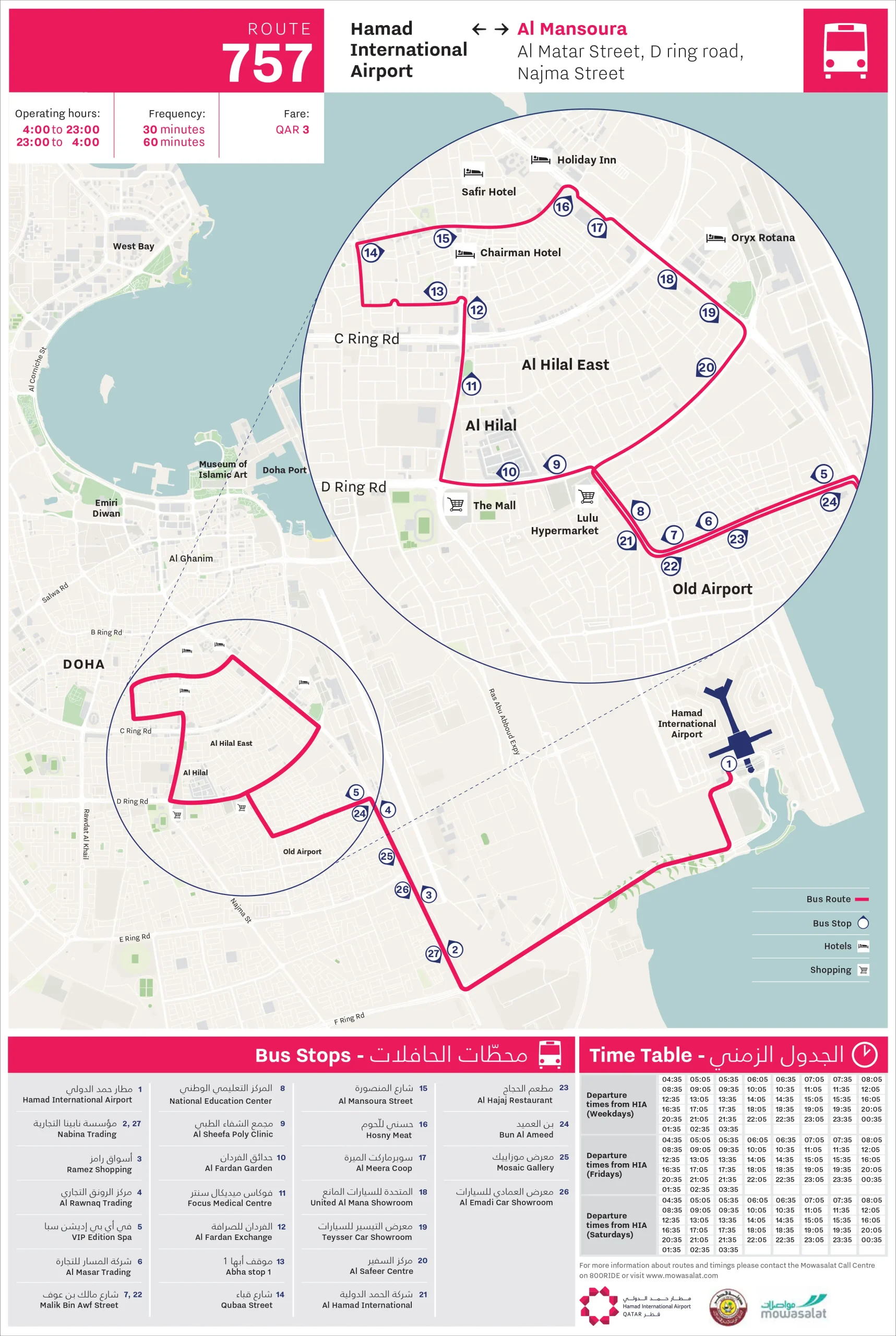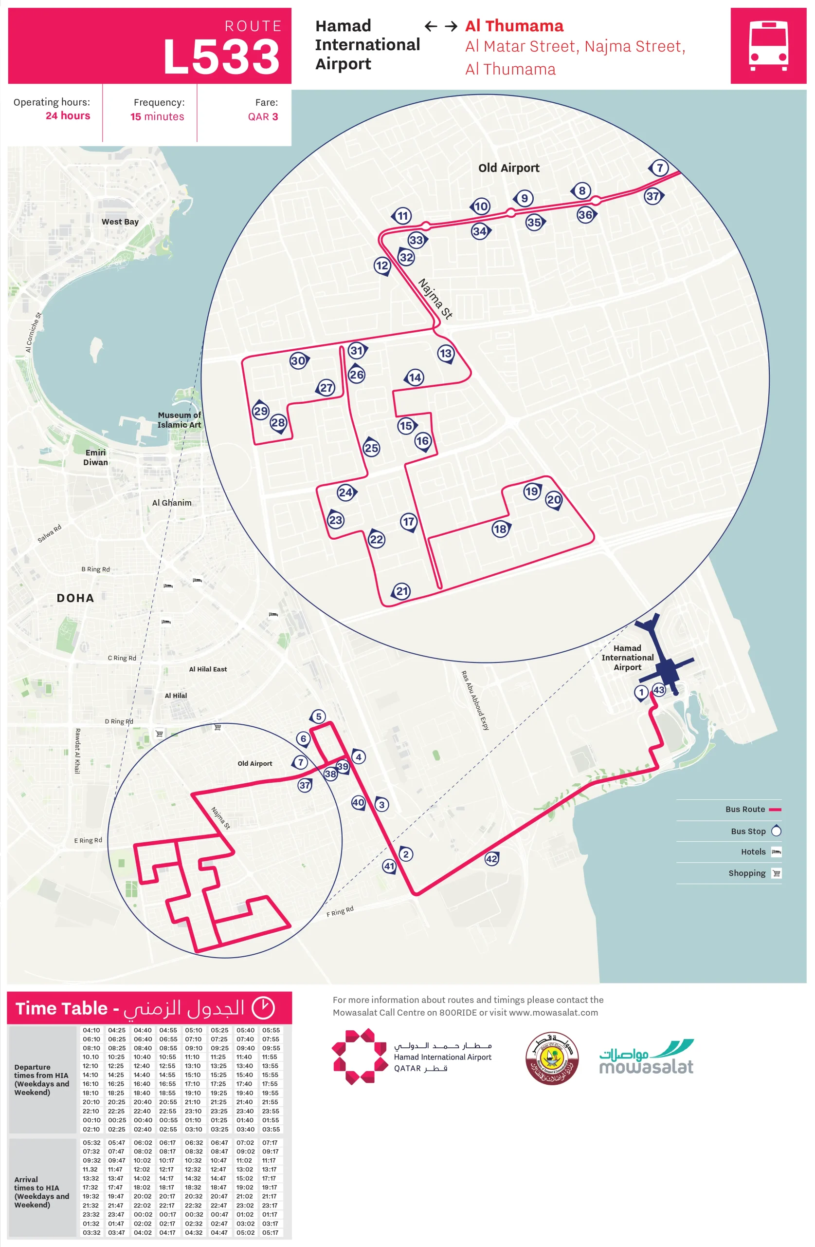 Bus: There is a bus station at the airport that takes you to the two stations of Masayed Industrial Zone and Al Ghanim Bus Station. A Carva card is required to use the bus. Route 109 goes to the Masiasad area and Route 747 to Al Ghanim station.