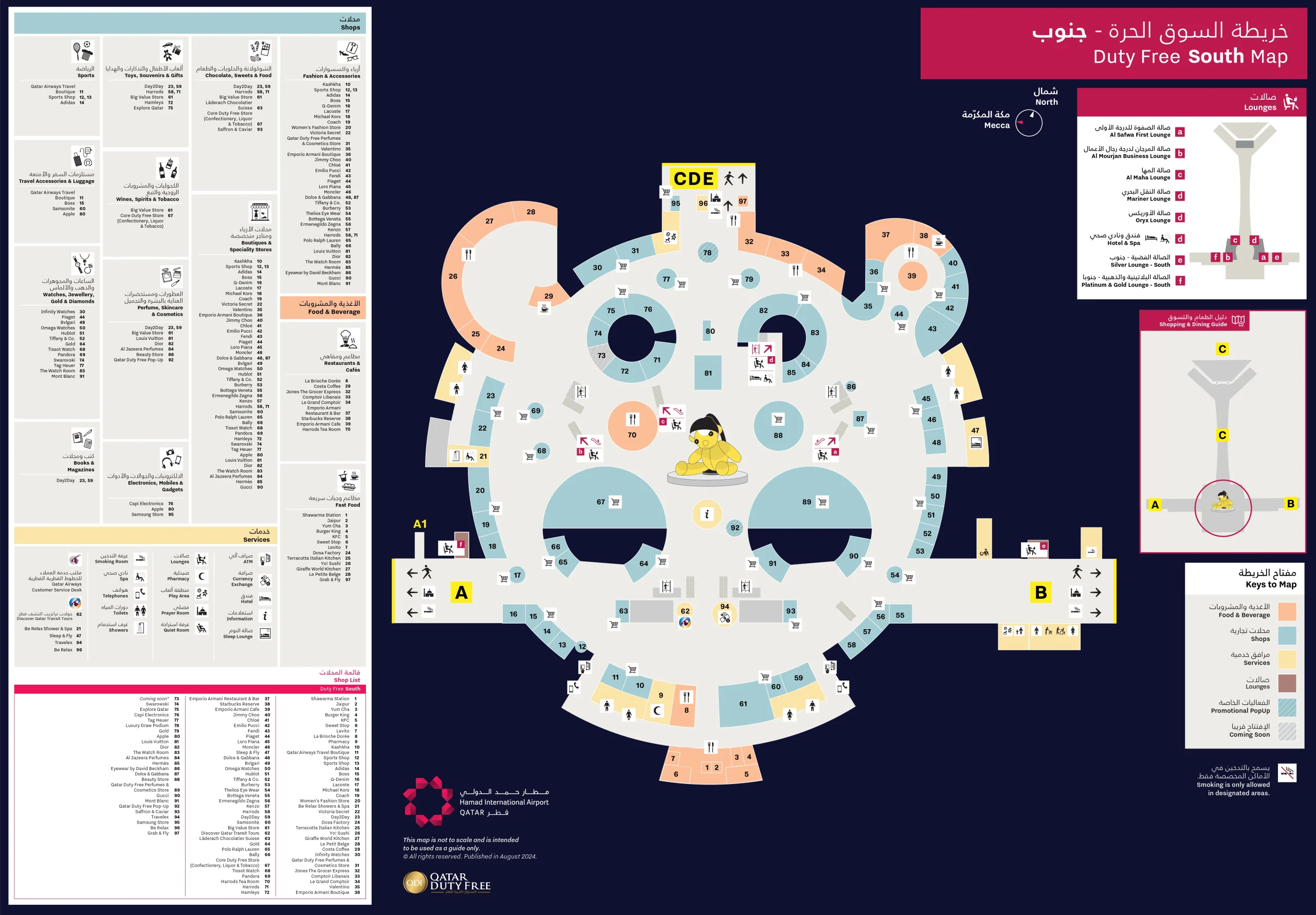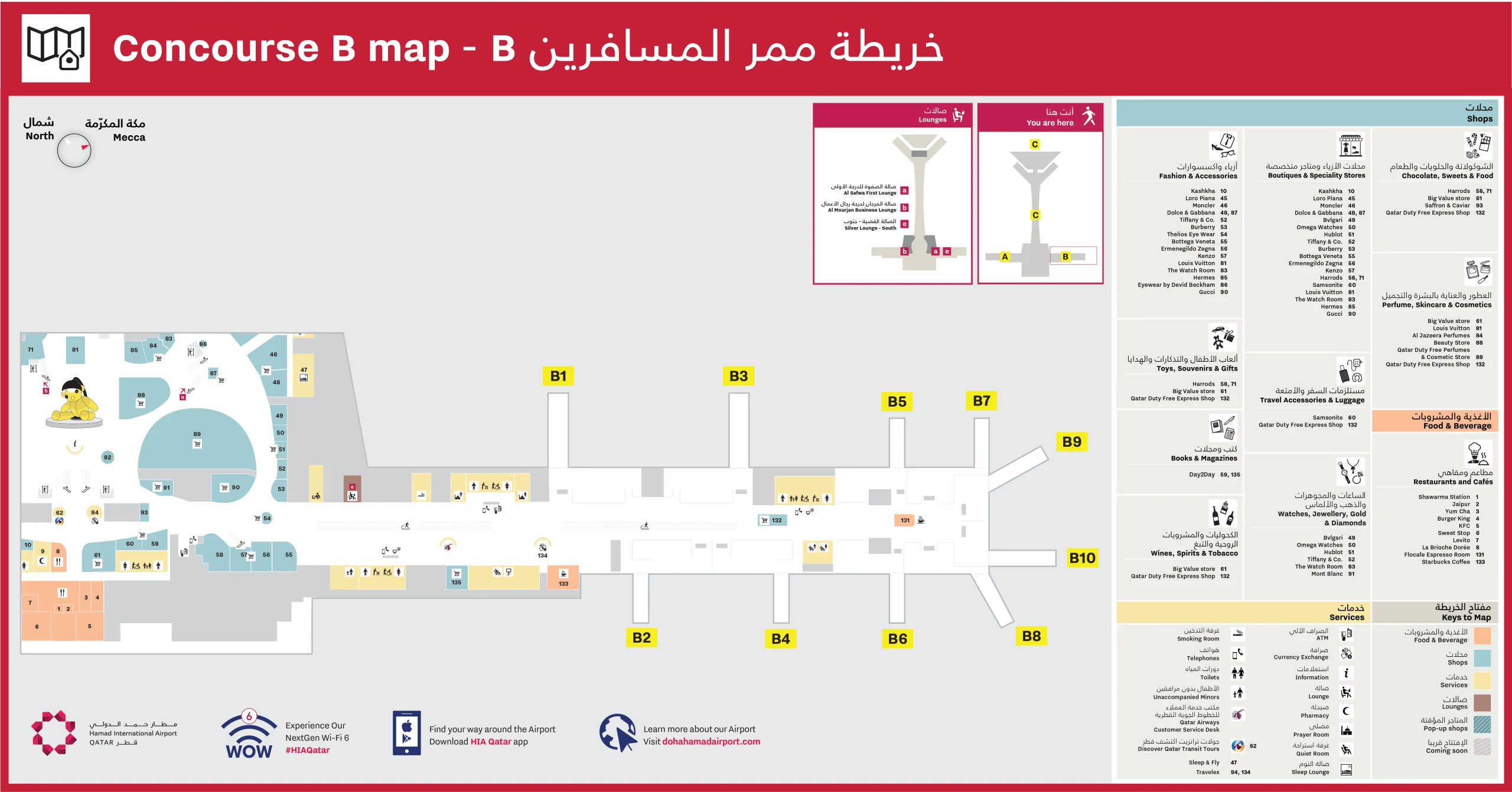 Shops and shopping malls: There are shops for books, clothes, Qatar souvenirs, jewelry, Qatari handicrafts, food items, etc., at the airport, where you can buy your favorite products or colorful souvenirs tax-free.